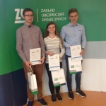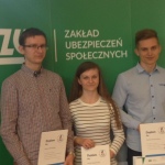 W rywalizacji ważna była nie tylko ogromna wiedza o ubezpieczeniach społecznych , ale też tempo rozwiązywania testu , gdyż w przypadku jednakowej liczby punktów decydowała kolejność ukończenia pracy. Kacper , kapitan naszej trójki, oddał kopertę z testem po zaledwie 9 z 30 minut przeznaczonych na rozwiązanie. Po sprawdzeniu prac przez komisję okazało się , że byli nie tylko najszybsi , ale i najlepsi! I drugi rok z rzędu będą reprezentować świętokrzyskie w finale krajowym, który odbędzie się 26 kwietnia w centrali ZUS w Warszawie. Rok temu zajęliśmy tam 4 miejsce. Gratulujemy Natalii, Kacprowi i Danielowi i życzymy powodzenia w finale!