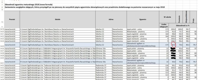 Prezentujemy screeny komunikatu OKE w Łodzi z wynikami egzaminu maturalnego 2018. Całość dostępna pod adresem http://www.oke.lodz.pl/info.php?i=39 (należy wejść w zakładki:Egzaminy \ Egzamin maturalny \ RAPORTY i pobrać właściwy raport). Gratulujemy wyniku zaprzyjaźnionemu liceum, treść wpisu na oficjalnej stronie Facebooka I LO pozostawiamy bez komentarza.