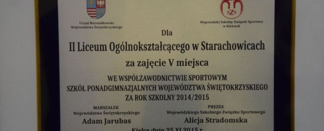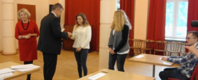 Dziś w sali konferencyjnej - ,,Olimpia” Urzędu Miejskiego odbył się konkurs promujący używanie poprawnej polszczyzny pod nazwą ,,Z polszczyzną za pan brat”. Do konkursu przystąpili uczniowie gimnazjów starachowickich i szkół ponadgimnazjalnych. Naszą szkołę reprezentowały: Katarzyna Samiec przygotowana przez Panią Agnieszkę Tomczak