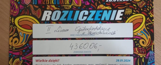 Uczeń klasy biologiczno-chemicznej Grzegorz Piotrowski zajął III miejsce w etapie wojewódzkim Olimpiady Zdrowia PCK. W pierwszej części ocenie podlegała przeprowadzona przez uczestników akcja promocyjna pod hasłem: „Dieta i ruch”. Grzegorz wraz z Polą Sołtykiewicz i Tymoteuszem Romanowskim przeprowadzili zajęcia poświęcone