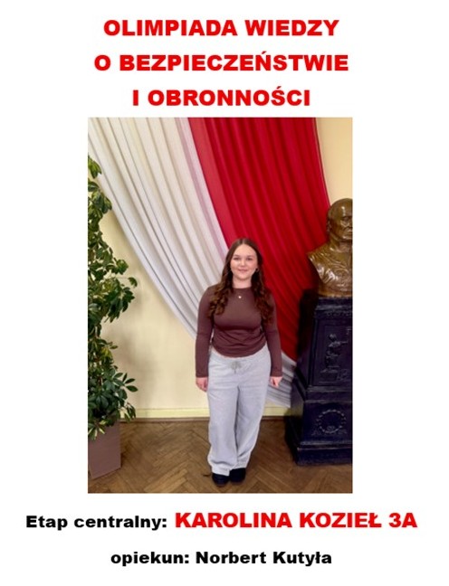- KAROLINA KOZIEŁ 3a – etap centralny Olimpiady Wiedzy o Bezpieczeństwie i Obronności (zawody w toku)