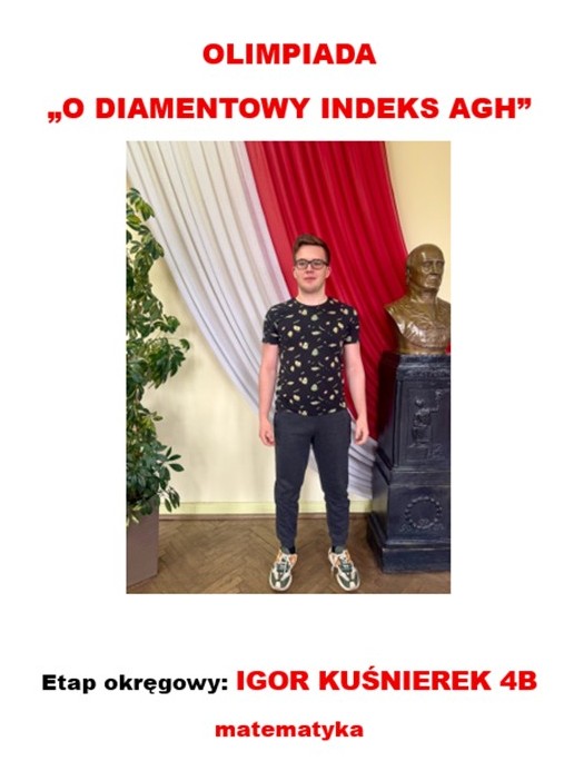 - IGOR KUŚNIEREK 4b – Olimpiada „O Diamentowy Indeks AGH” /matematyka (zawody w toku)
