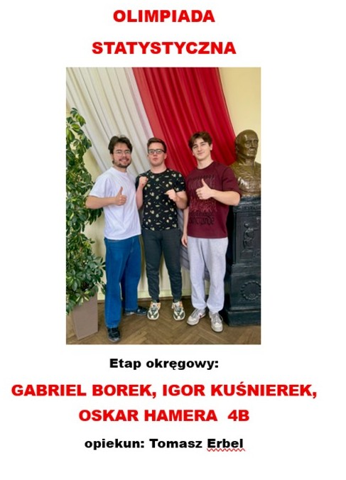 - GABRIEL BOREK, OSKAR HAMERA I IGOR KUŚNIEREK 4b – Olimpiada Statystyczna