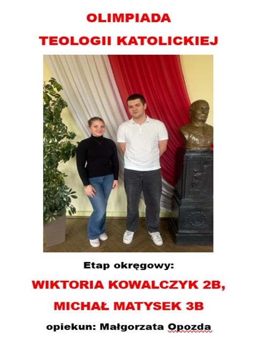 - WIKTORIA KOWALCZYK 2b i MICHAŁ MATYSEK 3b – Olimpiada Teologii Katolickiej