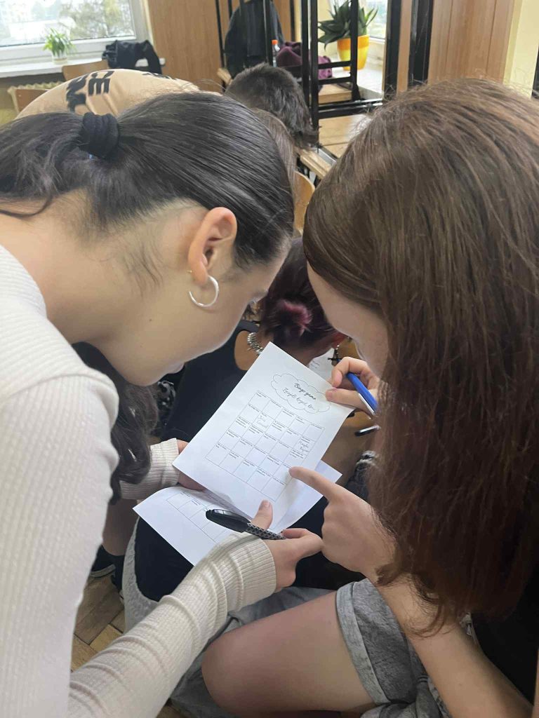 Zajęcia zostały poprowadzone przez pedagoga – p. Darię Rogalską oraz psychologa – p. Klaudię Garlińską.